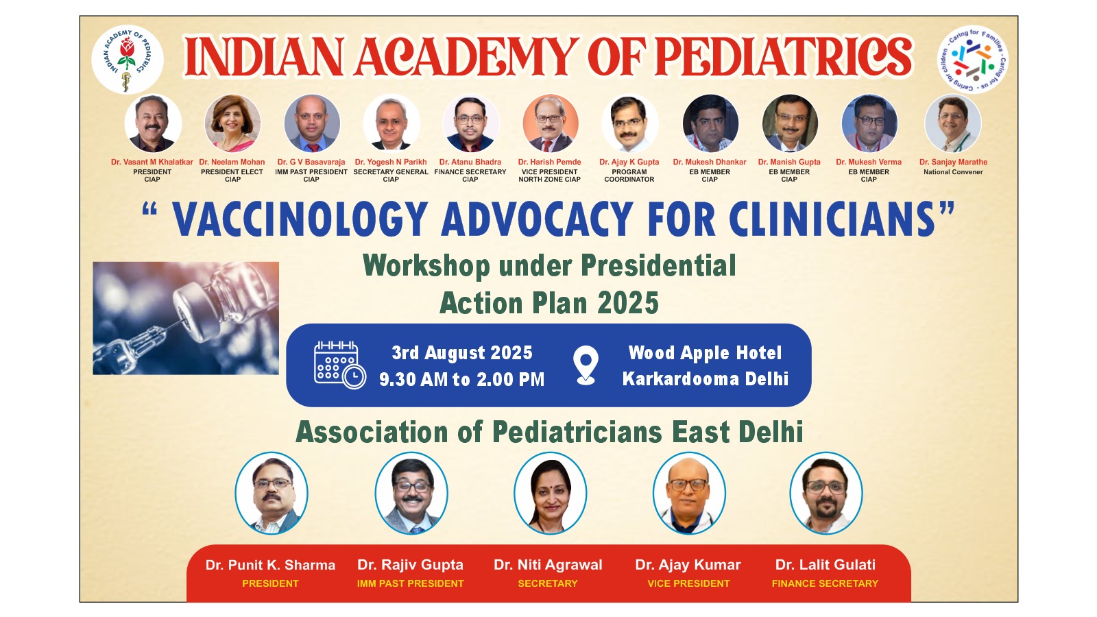 AP East Delhi (AOP East City) was started in 1995 as EDPF. A sapling planted in 1995 has become a fruit-bearing tree. The desire to know each other, learn from each other, and learn in a group was the motivating force to start EDPF. A gathering of 10 pediatricians was held at the K.D.Medicare centre, Kiran Vihar, and the EDPF was launched. The hallmark of the subsequent meetings was to have quality programs, and only the distinguished speakers were invited.